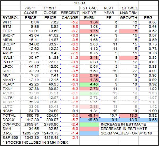 This is the same SOXM data as the previous post, but this time it is sorted by PEG.