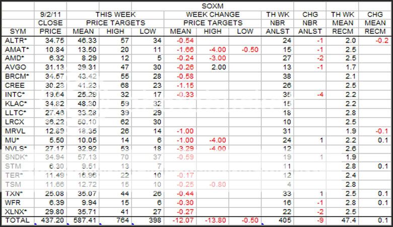 This is the weekly update of the Group and SOXM(SOX) tables in terms of earnings estimates and price changes.