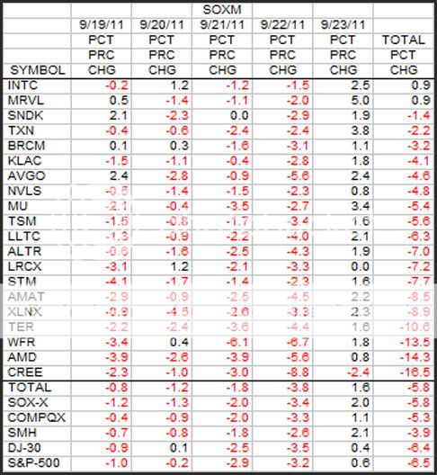 This is the weekly look at the SOXM stocks in terms of percent change.