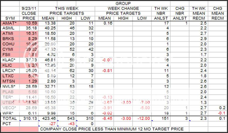 Target prices continue to fall and most of the Group stocks have closing prices this week that are lower than the lowest analyst number.