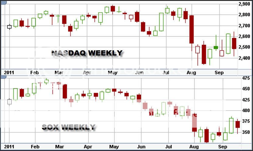With only 1 week to go to finish out the first 3Qs of the CY, the charts show the weekly results for the SPX, DJIND, NASDAQ, and SOX.