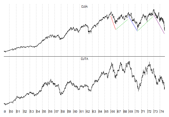 To: yard_man who wrote (42046 ) 9/25/2011 1:39:11 PM From: ggersh Read Replies (2) | Respond to of 119360 Dow Theory Update Tim Wood 21 September 2011 According to Dow theory, both bull and bear markets have three phases. Between each of these phases there are important counter-trend moves. Our Dow theory founding fathers explained that these counter-trend moves are misleading and tend to be taken as a continuation of the previous long-term secular trend. Based on the longer-term phasing and value aspects of Dow theory, the evidence continues to suggest that the last great bull market began at the December 1974 low and peaked in October 2007. This data also continues to suggest that the decline into the March 2009 low was merely the Phase I decline and that the rally out of the March 2009 low serves to separate Phase I from Phase II of a much longer-term secular bear market. That's right, the rally out of the March 2009 low was not a new bull market or a continuation of the previous long-term secular bull market. Rather, it is part of a correction within a much longer-term secular bear market that began at the 2007 top. In fact, based on my longer-term bull and bear market relationship studies and other historical characteristics, the evidence suggests that once the rally out of the 2009 low has run its course, the Phase II decline should prove to be far more devastating than the Phase I decline. Therefore, from a longer-term perspective I remain very bearish. More recently, on August 4th both the Industrials and the Transports closed below their March 2011 secondary low points. As a result, a Dow theory trend change occurred and since this is the first such trend change since the rally out of the March 2009 low began, we cannot take this development lightly. However, history shows that not all Dow theory trend changes are ominous and based on other technical data, there is a very good chance that the rally out of the March 2009 low has not yet run its course. If not, the rally separating Phase I from Phase II is not yet over. The details of these other technical studies are covered in the monthly research letters. Point being, the market is currently doing a bit of a technical high wire act in that while we do have a Dow theory trend change in place, on the other hand there is also other data that is actually still rather bullish. Ever since the August 9th low was made, I've told my subscribers that the expectation has been for the August 9th low to hold and so far, this has proven to be the case. This may or may not change and as a technician the key is to monitor the ongoing structural and statistical developments. Based on the prevailing consensus, the current pessimism actually makes perfect sense. As a rule, the market does what it has to in order to confuse the most people. Ever since the decline into August began, it seems that the consensus has turned rather bearish. In fact, I personally know of no one that genuinely believes a move back above the May 2011 high is possible and maybe it isn't. But, I do find it very interesting that such bearishness is being seen in conjunction with such inconclusive technical data. As a result, it seems that the most confusing thing the market could do is to continue to rally. I have again included the chart of the 1966 to 1974 bear market period below for comparison. The decline into the 1966 low marked the Phase I decline of the 1966 to 1974 secular bear market. This decline appears to be synonymous with the decline into the 2009 low. The rally separating Phase I from Phase II of the 1966 to 1974 bear market carried price up some 26 months into the 1968 top. I continue to believe that the rally out of the March 2009 low is synonymous with the rally into the 1968 top. Once all of the technical factors are in place I look for the fallout to be much the same as was seen following the 1968 top. I realize that the same old message and comparison is not exciting or sexy. But, the message of the market it is what it is as the bear continues to confuse the masses. Once the technical DNA Markers are all in place, the Phase II decline should get very very nasty. In the meantime, it currently appears that a much larger trap is likely being set.