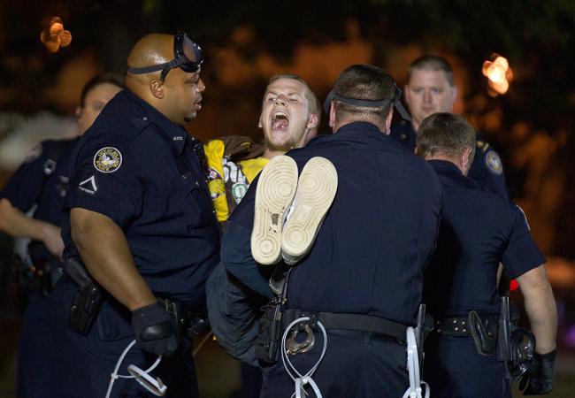 Police have said they responded with tear gas and bean bag rounds only when protesters began throwing bottles and other items at them.