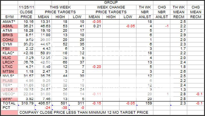 Not much action here this week, only small changes at the bottom line. However, note the large number of stocks that finished the week with prices lower than the lowest analyst estimate.