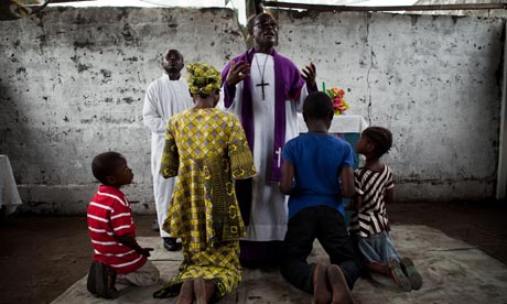 Children accused of sorcery are exorcised in a church of Kinshasa. Photograph: Gwenn Dubourthoumieu/AFP/Getty Images
