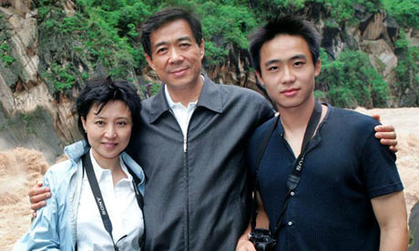 Populist veneer … Communist party boss Bo Xilai, centre, his lawyer wife Gu Kailai, who is being questioned about the death of Neil Heywood, and their son Guagua.