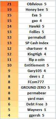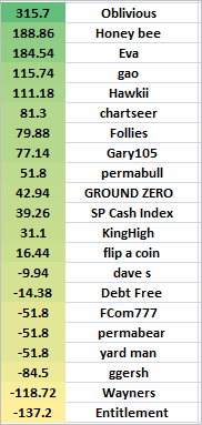 AND THIS MONTH'S BOOBY PRIZE GOES TO OUR VERY OWN GGERSH, ALTHOUGH HE ALSO HAD 4 POINTS ABOVE ZERO... ALL IN ALL, A SUPER ACCOMPLISHMENT, FOR SURE...