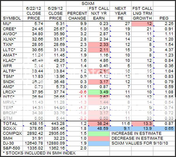 This is the weekly update of the SOXM stocks in terms of earnings estimates, growth estimates, and price changes sorted by price percent change.