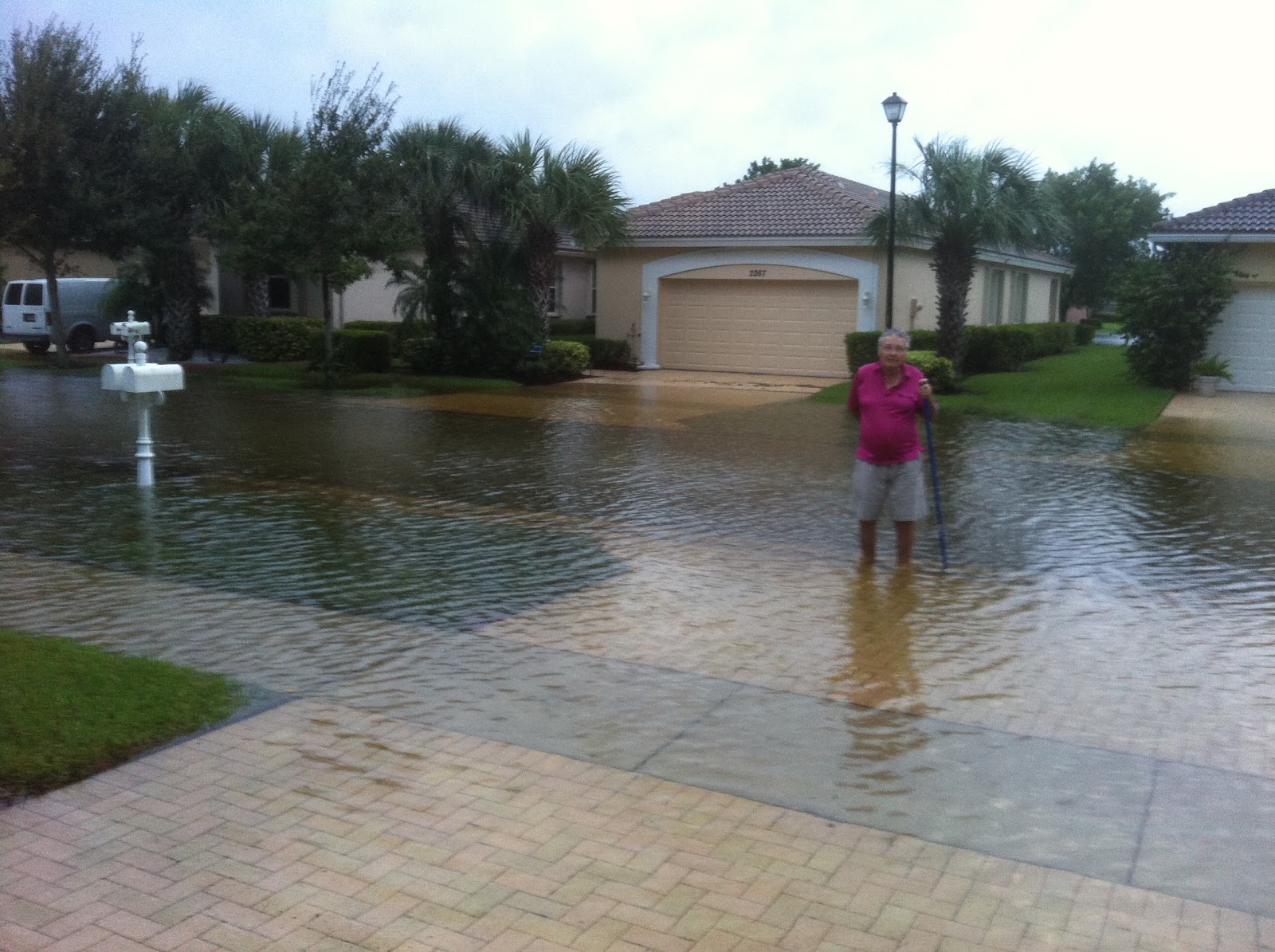 How was the flooding from Isaac down your way? This is a picture of me on Monday morning standing in front of my house. The water was higher yesterday afternoon after more rain. It was down this morning but is currently back up to about the same level in the picture after more rain this afternoon.
