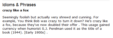 Not sure if you understood Farmboy, but "crazy like a fox" is good.