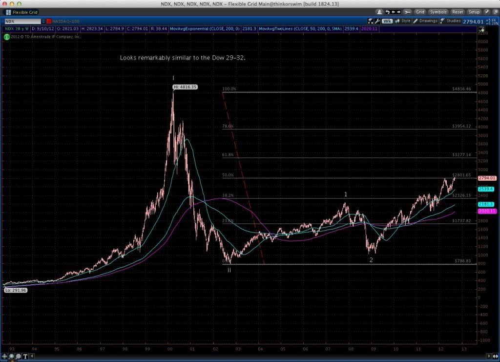 The Naz 100 looks almost remarkably similar to the Dow 1929-1942. From the 32 low in the DOW we went up about 25 times 30 years or so. That would put the Naz 100 near 20,000 by 2030 ish