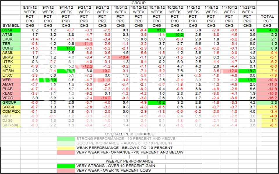 This is the weekly update of the 13 week rolling quarter for the Group stocks in terms of percent change.