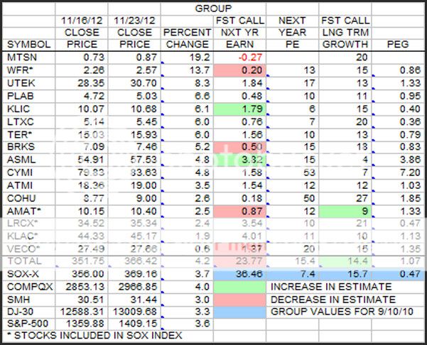 This is the weekly look at the Group stocks in terms of earnings estimates, growth estimates, and price changes sorted by price percent change.