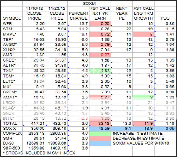This is the weekly look at the SOXM stocks in terms of earnings estimates, growth estimates, and price changes sorted by price percent change.
