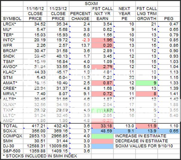 This is the same SOXM data as the last post, but this time it is sorted by PEG.