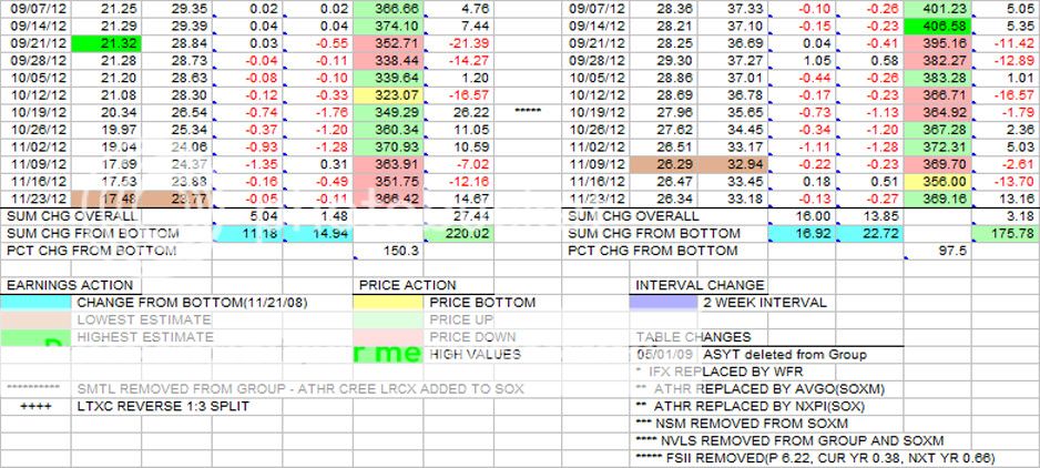 This is the weekly update of the Group and SOXM(SOX) tables in terms of earnings estimates and price changes.