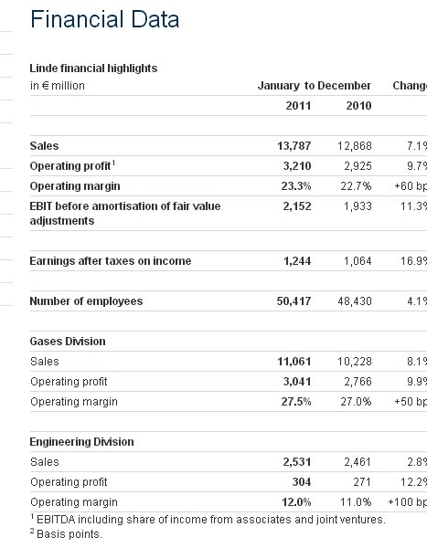 This is their 2010-2011 summary: The Linde Group