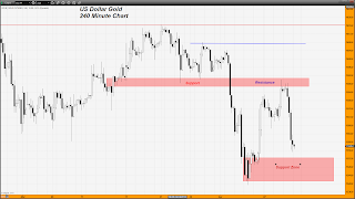 You can see that the former support zone between approximately $1592 - $1588 or so, turned into a resistance zone and attracted selling yesterday when gold failed to extend past it and back to $1600.