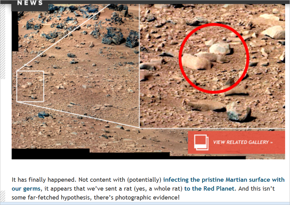 Photographic evidence of life on Mars... they discovered a live rat on the martian surface...