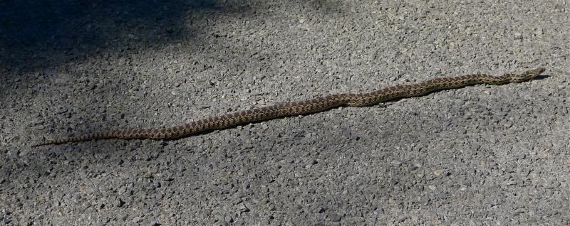 I almost ran over this guy, had to stop and ask him why he was on that road. He said because he liked it, I said not good enough, get over there in the bushes. He really wanted to stay in the toasty sunshine, but I got him to move.