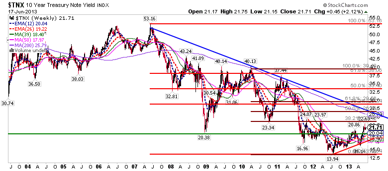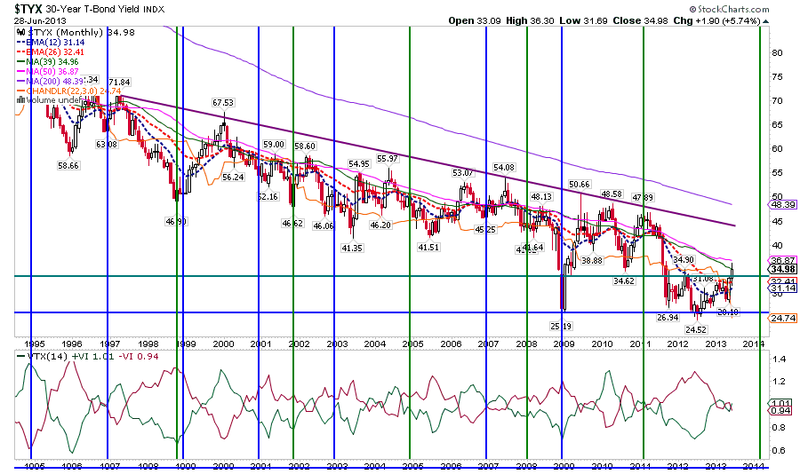To: Chip McVickar who wrote (14163 ) 6/29/2013 2:58:28 PM From: John Pitera Respond to of 33421 Hi Chip....I have a whole grab bag of content and charts here.... but I know you are one of the gifted ones on SI who can weave through my Matrix -vbg- = very bug grinTo: gold$10k who wrote (45202 ) 6/29/2013 2:40:26 PM From: John Pitera of 45207 Hi Gold10K, you could easily be right...after all we are talking about Gold topping out over 2 years ago and at 1923$ an ounce and we were down all the way to $1180... everyone is insanely bearish..... and we have room for a huge short squeeze.... I get feed lots of good info... Dr. John Najarian was commenting how he was going long the AGQ which is the Silver pro shares.. thursday's fast money and sometimes I here things and they ring true.... Silver leads gold and I did post a chart a 5 year monthly silver chart back when it was at 21 saying I was looking for an ultimate target of 17.50 to 18 and we got 18.06 and then a big reversal on Friday... the gold miners and HUI also leads the physical metal and I posted a 20 year weekly chart that shows that we have come back to the Major uptrend line and are more oversold than at any time in the past 20 years. Most of my work is tilted toward those who are larger position traders who have to scale out of shorts on the way down and scale into longs before we reach the turn...... I had already been doing stock trading commodity futures , options and currencies. with a company called Richardson Mann in the American Express building in Sydney... after having traded at school in Texas,,, I was very much into technicals , Elliott, Gann, Price divergences, sentiment and moving average cross overs etc.... I was fortunate to land a job on the bond desk at citibank... and I was young and tech savvy enough that I brougt in live time charting software and live price feeds... I was the only one in a dealing room of almost 100 people who had this.... I'm talking 1986-87...... I ended up running a profit center and also becoming the chief market technician.... and because we had such a sophisticated swaps team and very large book.... a very large forward FX team..... an excellent floating rate note desk.... funding... and others.. we were so big in the Sydney bank bill futures market that on many days half of the total volume was from our firm.... and the different desks where using them 75% of the time as an arbitrage hedge... but I did find that I had to think about what was coming down the road.... and start to get people geared up to change from bull to bear in the late stages of the price move..... that has kind of carried on..... I normally don't look at the interday and real short term stuff....but right now... is right up there with anything I have ever seen or read about...Message 28976672 also AJ posted this on my market Lab last night and it is falling into place...From: ajtj99 6/28/2013 10:33:36 AM 2 Recommendations Read Replies (2) of 14245The XAU weekly has made or is close to making a low, IMO. The current trading box appears to extend from the 80 area to the 110 area. The risk/reward