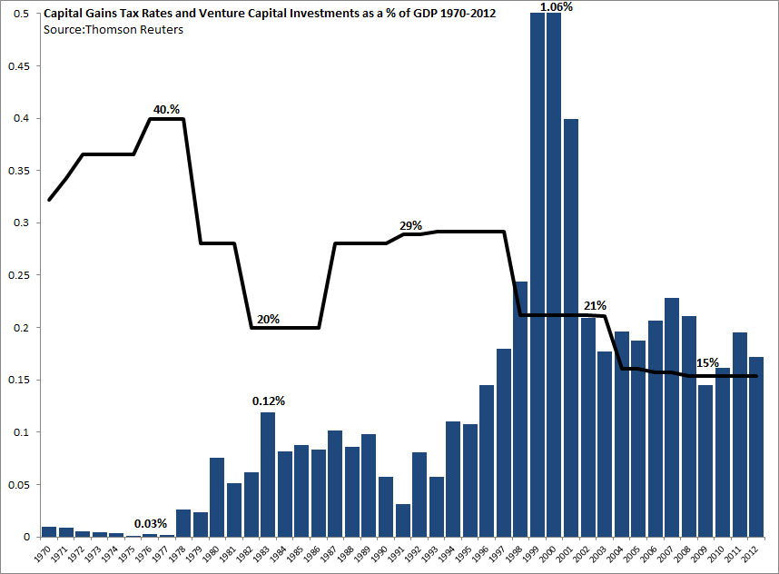 To: Broken_Clock who wrote (50272 ) 8/5/2013 10:53:41 PM From: TimF Respond to of 85487 Why Capital Gains are taxed at a Lower Rate June 27, 2012 By David Block, William McBride A joint hearing held by the Senate Finance Committee and the House Ways and Means Committee on June 28 will discuss capital gains taxation in the context of broader tax reform. A number of proposed changes have been highlighted; The Bowles-Simpson proposal recommends taxing capital gains and dividends at the same rate as labor income, while many congressional Democrats recommend raising the rate, citing concerns about both revenue and inequality. Any proposal focusing on raising the rate will likely fail to raise the predicted revenue, as demonstrated by both economic history and the high burden already placed on American corporations. The justification for a lower tax rate on capital gains relative to ordinary income is threefold: it is not indexed for inflation, it is a double tax, and it encourages present consumption over future consumption. First, the tax is not adjusted for inflation, so any appreciation of assets is taxed at the nominal instead of the real value. This means investors must pay tax not only on the real return but also on the inflation created by the Federal Reserve. Second, the capital gains tax is merely part of a long line of federal taxation of the same dollar of income. Wages are first taxed by payroll and personal income taxes, then again by the corporate income tax if one chooses to invest in corporate equities, and then again when those investments pay off in the form of dividends and capital gains. This puts corporations at a disadvantage relative to pass through business entities , whose owners pay personal income tax on distributed profits, instead of taxes on corporate income, capital gains, and dividends. One way corporations mitigate this excessive taxation is through debt rather than equity financing, since interest is deductible. This creates perverse incentives to over leverage, contributing to the boom and bust cycle. Finally, a capital gains tax, like nearly all of the federal tax code, is a tax on future consumption. Future personal consumption, in the form of savings, is taxed, while present consumption is not. By favoring present over future consumption, savings are discouraged, which decreases future available capital and lowers long term growth. Not only has a low capital gains tax rate worked to encourage savings and increase economic growth, a low capital gains rate has historically raised more in tax revenue. At a 2010 talk at the Cato Institute Dr. Daniel J. Mitchell and Dr. Richard W. Rahn argued that the government has actually raised more revenue with a lower long term capital gains tax rate than a higher rate. For example, in 2007 the IRS raised $122 billion with a 15% tax rate as opposed to $7.8 billion in 1977 ($26.7 billion in 2007 dollars) with a 40% tax rate. In fact, when President Bush signed into law a cut in the top rate from 20% to 15%, revenue increased from $51.3 billion in 2003 to $137.1 billion in 2007 (although it fell significantly after the 2008 financial crisis, understandably). Attempting to use the tax code to address income inequality will likely disappoint those who seek to attack the lower tax rate on high net worth individuals caused by a lower capital gains and dividends rate. Inequalities caused by globalization and differing education levels will not be remedied by destroying future investment; to the contrary those most likely to be hurt the most by lower economic growth are those with lower incomes. The intensification of international competition for lower corporate tax rates has been highly publicized, but international capital gains taxation has been largely ignored. Capital gains taxation adds another layer of taxation onto American businesses, making them less competitive. The table below shows how the U.S. stacks up in terms of the total taxation of corporate investment. The first column shows the U.S. capital gains rate (federal plus state) is above the OECD average. Thirteen countries in the OECD have no capital gains tax. The second column shows that the U.S. integrated capital gains tax rate (corporate rate plus capital gains) is the 4th highest in the OECD. This burden will rise to the highest in the OECD starting January 1 if the Bush tax cuts are allowed to expire and the Obamacare investment surtax of 3.8% goes into effect. The combination of history, international competition, and the destructive nature of the capital gains tax suggests any attempts to raise revenue by raising rates are doomed to failure. The focus on June 28th should not be on raising the capital gains rate, but should instead be focused on how to keep the rate low. History shows that this is the most effective way to both raise revenue and promote economic growth.taxfoundation.org