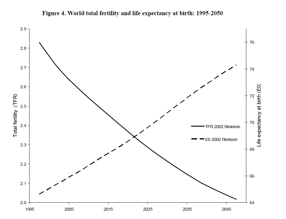 People focus on the amount the world population has increased over the last 60 years to produce shock numbers, but the real stunner is the drop in fertility rates -- nearly in half, which is really astounding. I still have my treasured first edition of Ehrlich's Population Bomb . It is hilarious reading, all the more so because he gets everything so wrong, yet the media still tends to take him seriously. The recurring theme in Inferno is that man's greatest problem is that he has successfully tackled many diseases and thus increased life expectancy, and it is this longer life expectancy that will be the roots of mankind's Malthusian downfall. However, exactly the opposite is true. There is a ton of scientific work that says that longer life spans lead to lower fertility rates (the other thing that most contributes to lower fertility rates is economic growth). Here is a chart right out of the UN study linked above showing a clear inverse correlation between life expectancy and birth rates. Correlation is not causation, but this is backed by a ton of other empirical evidence to support causation. Wow. There is no trend towards accelerating population growth -- the trend is in the opposite direction, to deceleration. And folks who have underestimated man's ingenuity in feeding larger populations have always turned our to be wrong. Ehrlich said there was no way --- absolutely no way -- India could feed an additional 200 million people by 1980. Well, in 2013 it feeds an additional 800 million people to a better standard that the country was fed in Ehrlich's time. Hell, we could probably feed an additional half billion more just by repealing laws that put a significant amount of America's food production into automotive fuels...coyoteblog.com