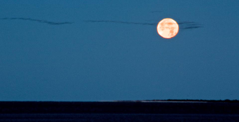 Here was the biggest missed opportunity from yesterday morning. That black line you see are birds. I was at ISO 200, f11, 300mm, 1/5 second. Bumping the ISO to 1000, opening to f5.6, I could have been at maybe 1/60 (without doing the calculation) and had detail in the birds. Plus negated the wind effect on the moon. Just wasn't thinking. Oh well, live and learn.