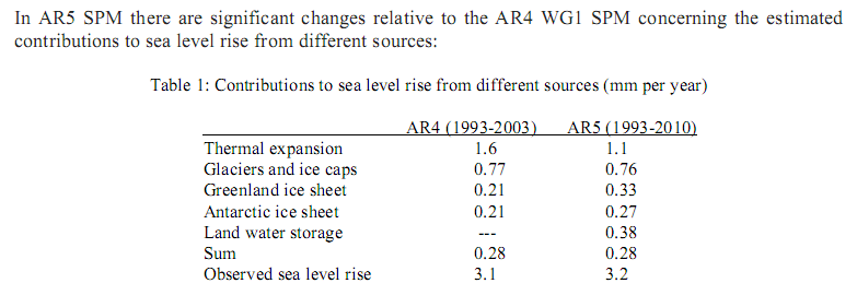 Thermal expansion is one third smaller in AR5 and land water storage with a substantial amount is