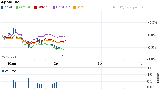 GOOGL is faring a little worse than AAPL today, on a percentage basis, as I write this.