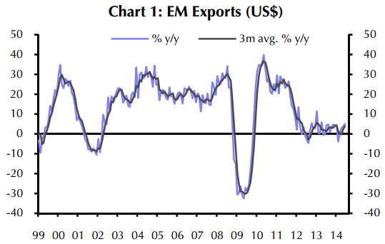 EM economies are rebounding from an export malaise that has marred their fortunes since early 2012 and rendered several of them vulnerable to the tapering of US monetary stimulus.