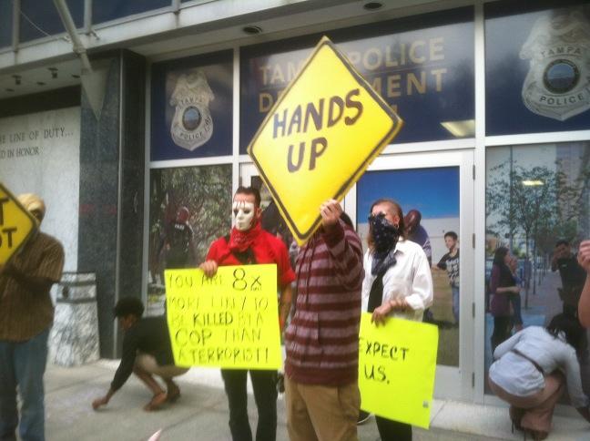 Day of Rage arrives in #Tampa. Around 30 people are outside Tampa police station demanding end to police brutality.