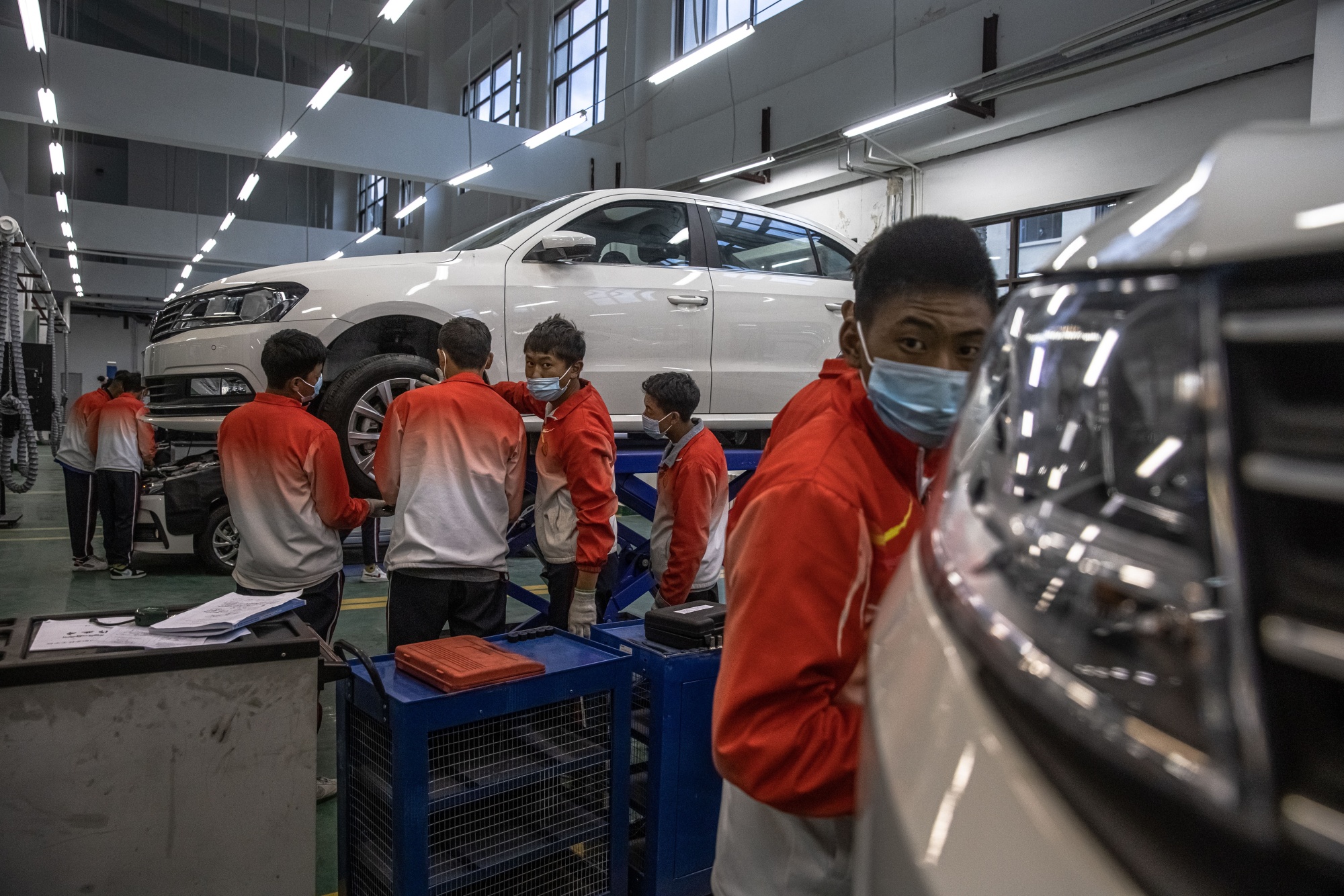 A class at the Nyingchi Vocational Technical School during a government-organized media tour in mid-October. The center is designed for students who failed a test to continue onto high school.