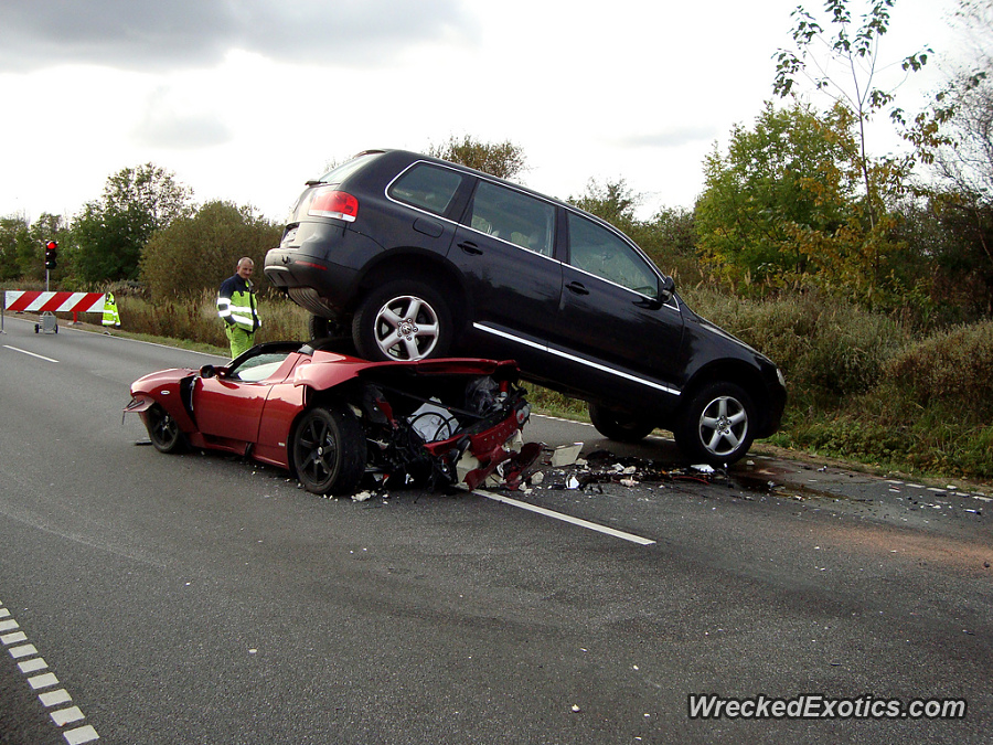 Someone accidentally set another car on top of this Tesla and it got all bent up. Tesla won't take responsibility for this, someone else will have to pay for a replacement Tesla.