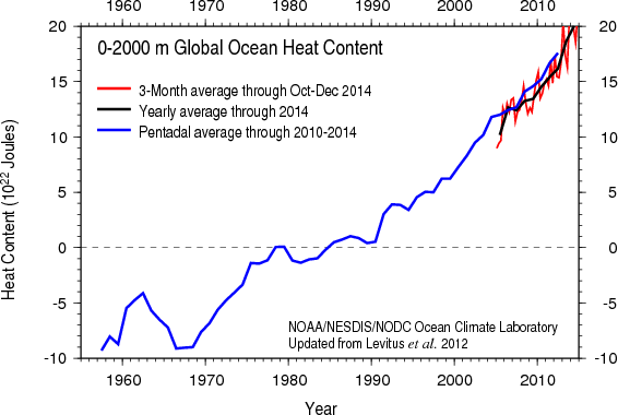 To: Brumar89 who wrote (831557 ) 1/22/2015 11:07:12 AM From: Wharf Rat Read Replies (2) | Respond to of 1577512 "Who reaps the benefits from electric vehicle rebates?" People who buy EVs. People who make and EVs. People who make and sell electricity. People who make and install solar panels for people who buy EVs. The oceans are warming so fast, they keep breaking scientists' charts NOAA once again has to rescale its ocean heat chart to capture 2014 ocean warming Ocean heat content data to a depth of 2,000 meters, from NOAA. John Abraham Thursday 22 January 2015 10.25 EST Wow, was this a bad year for those who deny the reality and the significance of human-induced climate change. Of course, there were the recent flurry of reports that 2014 surface temperatures had hit their hottest values ever recorded. The 2014 record was first called on this blog in December and the final results were reported as well, here . All of this happened in a year that the denialists told us would not be very hot. But those denialists are having a tough time now as they look around the planet for ANY evidence that climate change is not happening. The problem is, they’ve been striking out. And just recently, perhaps the most important bit of information came out about 2014 – how much the Earth actually warmed. What we find is that the warming is so great, NOAA literally has to remake its graphs. Let me explain this a bit. We tend to focus on the global temperature average which is the average of air temperatures near the ground (or at the sea surface). This past year, global air temperatures were record-breaking. But that isn’t the same as global warming. Global warming is properly viewed as the amount of heat contained within the Earth’s energy system. So, air temperatures may go up and down on any given year as energy moves to or from the air (primarily from the ocean). What we really want to know is, did the Earth’s energy go up or down? The trick to answering this question is to measure the change in energy of the oceans. A thorough review of ocean heat measurement methods is found here ; we paid the requisite fee to make the paper open access. Anyone can download and read it. So what do the new data show? Well, it turns out that the energy stored within the ocean (which is 90% or more of the total “global warming” heat), increased significantly. A plot from NOAA is shown above. You can see that the last data point (the red curve), is, literally off the chart. The folks at NOAA do a great job updating this graph every three months or so. We can now say that the 2014 Earth had more heat (thermal energy) than any year ever recorded by humans. We can also say that the folks at NOAA will likely have to rescale their graph to capture the new numbers. The NOAA site is updated by Dr. Tim Boyer and can be found here. Click on slide 2 to view the relevant image. If people want to read a review of ocean heating that is written for a general audience, I suggest our recent peer-reviewed paper which can be found here. So when we look back on 2014 and the records that fell, it gives us some pause about the so-called pause (hat-tip to Dr. Greg Laden for that phrase). Some people tried to tell us global warming had “paused”, that it ended in 1998, or that the past 15 years or so had not seen a change in the energy of the Earth. This ocean warming data is the clearest nail in that coffin. There never was a pause to global warming , there never was a halt, and the folks that tried to tell you there was were, well, I’ll let you decide. For me, the facts speak for themselves. theguardian.com