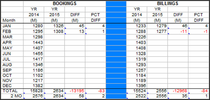 This is a more detailed look at the Bookings and Billings for 2015 compared to the monthly data for 2014.