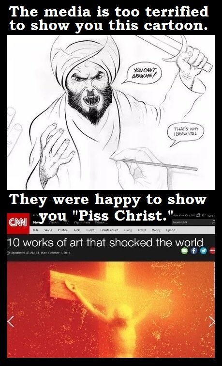 One approach is to just call out our media for sheer craven cowardice. The same media had no problem shoving "Piss Christ" in our faces and insisting we accept it as "art."