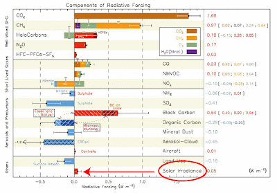 Tim also quotes Article 1 of the United Nations Framework Convention on Climate Change, which defined climate change, for the purpose of the Convention, as follows: 2. "Climate change" means a change of climate which is attributed directly or indirectly to human activity that alters the composition of the global atmosphere and which is in addition to natural climate variability observed over comparable time periods.It also defines a few other things, such as: 1. "Adverse effects of climate change" means changes in the physical environment or biota resulting from climate change which have significant deleterious effects on the composition, resilience or productivity of natural and managed ecosystems or on the operation of socio-economic systems or on human health and welfare. Conspiracy theorists are generally not very clear thinkers. If they were they'd have realised that in order to distinguish between changes of climate attributable to human activity from that attributable to natural climate variability, one must be able to determine what is attributable to natural climate variability. Or perhaps Tim does understand this, but just cannot process the thought properly, because he did write: Because of the political agenda people were allowed to believe the IPCC were studying climate change in total. The reality is you cannot determine human causes of change if you do not know or understand natural causes. The forcing diagrams used in early IPCC science Reports illustrate the narrowness (Figure 1) and its limitations. Tim's first sentence suggests that he has never read any of the IPCC reports. If he had he'd not have been able to miss all the sections in all the chapters that were about climate - and climate change. Such as all the parts about the impact of solar radiation, the impact of volcanic eruptions, greenhouse gases etc etc. Tim put up a chart of the human influences on climate, but he chose not to put up any charts of other influences on climate, such as these ones: