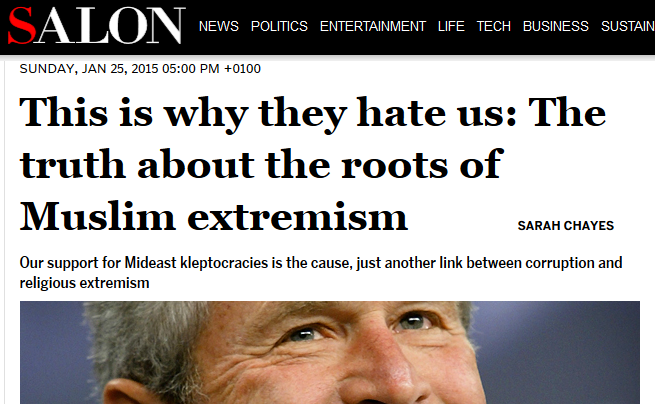 As far-fetched as concluding that America and her kid brother Israel sanction, harass, and bomb Muslims throughout the Middle East, and prop up corrupt Arab dictators?