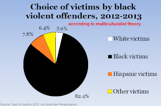 The racial animus behind these crimes need hardly be belabored; if 13,463 white-on-black rapes vs. 0 black-on-white rapes were occurring yearly in the United States, the media would be in a state of permanent uproar. We'll just remark in passing that since Obama took office, hundreds of random black-on-white assaults (up to and including disfigurement and death) have been committed to the tune of 'cracker,' 'tree honky,' 'white bitch,' 'white boy,' 'white motherfucker,' 'move your white ass,' 'I hate white people,' 'kill the white people,' 'fuck you, white bitch,' 'I hate you fucking white people,' and 'get that white man.' But such stories are carefully confined to the local police blotter, as are those of the unarmed white men regularly shot by the police, for whom no white has ever burned down a city or even, it seems, raised an eyebrow.