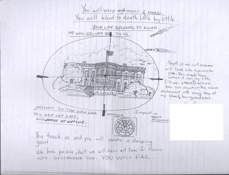 Malvo testified that Muhammad, driven by hatred of America because of its "slavery, hypocrisy and foreign policy" and his belief that "the white man is the devil", planned to kill six whites a day for 30 days. Malvo alleged that Muhammad had said: "We are going to go to the Washington DC area and we are going to terrorise these people." Digging deeper, we see that Muhammad (nee Williams) was a disenchanted Gulf War vet, Nation of Islam member, and possibly in the extremist group Al-Fuqra. His brainwashed protegé, Lee Malvo, glorified jihad in jailhouse drawings:
