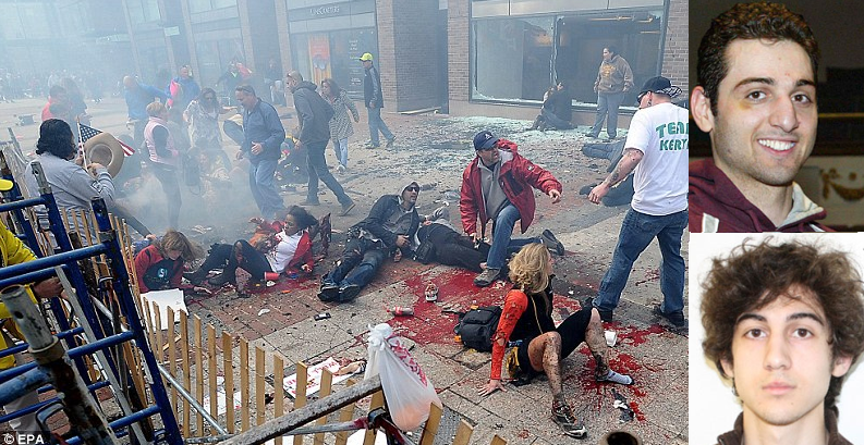 [...] a note scrawled by Dzhokhar with a marker on the interior wall of the boat where he was hiding said the bombing were "retribution for U.S. military action in Afghanistan and Iraq", and called the Boston victims 'collateral damage', "in the same way innocent victims have been collateral damage in U.S. wars around the world."