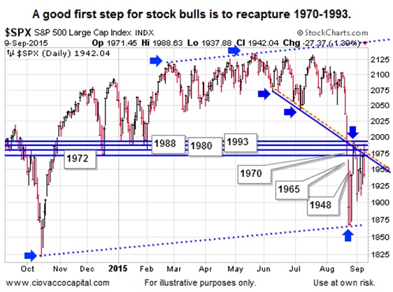 To: Goose94 who wrote (14260 ) 9/10/2015 5:43:53 PM From: Goose94 Read Replies (1) | Respond to of 203346 The Federal Reserve has a dual mandate (employment and inflation). With the unemployment rate hovering near the Fed's stated level of full employment, it is getting harder and harder to justify keeping rates at "the world is about to end" levels. It became a bit tougher to justify zero rates Wednesday when the latest data on employment was released. From Bloomberg :Job openings in the U.S. surged to a record in July as hiring cooled, a sign employers are having a hard time finding qualified workers. The number of positions waiting to be filled jumped by 430,000, the biggest gain since April 2010, to 5.75 million, a Labor Department report showed Wednesday in Washington. That's the most in data going back to 2000. Note in the text above "a sign employers are having a hard time finding qualified workers"; that statement tells us wage inflation could be around the corner.S&P500 Stalled Near Resistance On Wednesday, the S&P500 made a second attempt to clear a band of possible resistance between 1970 and 1993; the attempt was not successful. The expression "what once acted as support may now act as resistance" applies to the chart below.Similar To 2000 and 2007? We recently examined stock market corrections , illustrating they can go on for weeks or months. A common response was "why did you not make a comparison to 2000 and 2007?" Ask and you shall receive - this week's video compares 2015 to the last two bear markets.Investment Implications - Rates Cannot Stay At Zero Forever You may ask, "how can the Fed raise rates now?" Fair question, but a better question may be how can they justify keeping rates at emergency levels when we are not in an emergency situation. From Bloomberg :Federal Reserve Bank of Richmond President Jeffrey Lacker said it's time for the central bank to end the era of record-low interest rates, now that the impacts from winter weather and energy prices have passed. "I am not arguing that the economy is perfect, but nor is it on the ropes, requiring zero interest rates to get it back into the ring," Lacker said in the text of a speech in Richmond. "It's time to align our monetary policy with the significant progress we have made." The chart below shows that interest rates are at the exact same level they were in the wake of the collapse of Lehman Brothers (financial crisis 2007-2009). How will stocks react to the first rate hike? That is for the market to decide, but history tells us that stock market volatility before and/or after a rate hike is not uncommon. ******** Chris Ciovacco