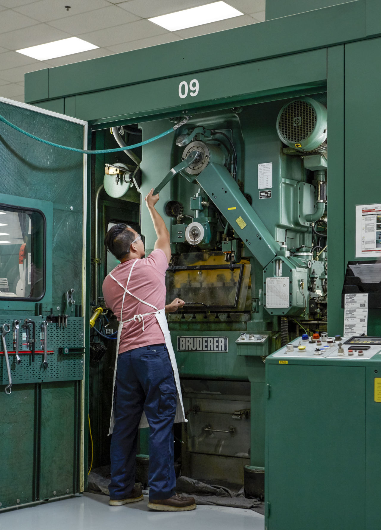 To compete against the cheap cost of labor in China, factories like this have to produce twenty times as much as a Chinese factory of the same size, one manager said. The factory in Lincoln produces more than two billion individual pieces every month. There are so many plastic pieces for so many different products being produced at any given time that it is nearly impossible for a manager to walk over to any one machine and know exactly what it's making.