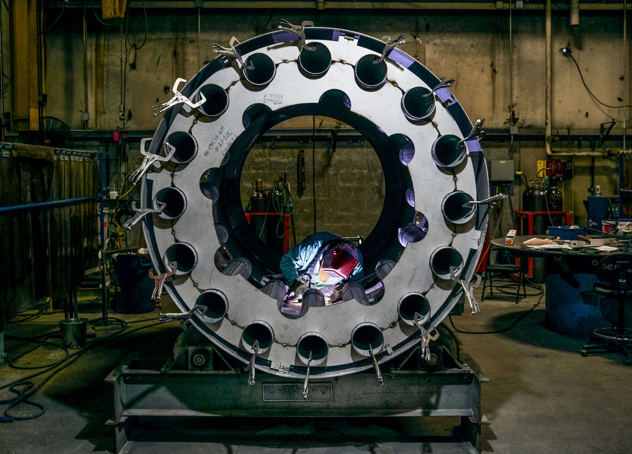 After the coiler turns and grips and ties off more than a mile of pipeline—which takes a matter of minutes—workers perform the pressurized water test that they put a segment of each shipment through before sending it out to a customer. "We want to know everything about the product before it leaves the factory," Glenn Munshaw, the engineer, says. "That includes the specific limits of each piece we produce."