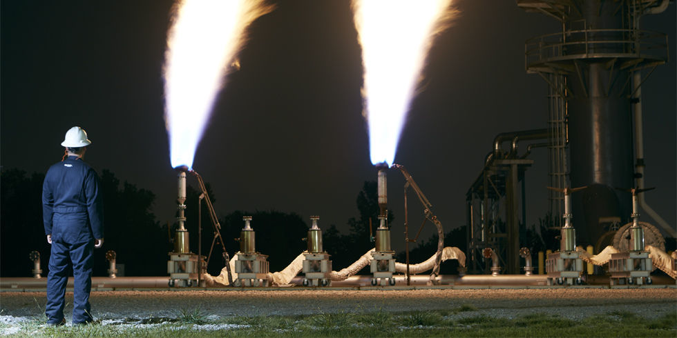 This is all happening on a gravel lot behind an unremarkable two-story office building not far from the airport in Tulsa, Oklahoma. It's the headquarters of John Zink Hamworthy, a combustion company that makes industrial burners and flares that can shoot flames eighty to a hundred feet into the air. (The company is often required to notify the airport before conducting tests.) A flare is essentially a safety device that uses combustion to convert flammable or otherwise dangerous gases or liquids into harmless compounds. They're used at landfills to neutralize methane gas, and at liquefied natural gas plants, where they can burn off high volumes of gas in an emergency, to prevent damage to people, the plant itself, and whatever else is nearby. A burner, meanwhile, uses combustion as energy. It can generate steam in a boiler or the heat needed to make food or pharmaceuticals or any number of other products. Burners like the ones at Zink are designed to minimize pollution usually associated with combustion sources, and the combustion flares and burners made here are hotter and more efficient than traditional flares and scrubbers, which often generate their own off-gases, and they help reduce CO2 emissions.
