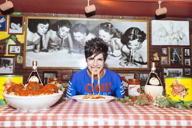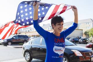 Helene Neville, a world record-holder for running the perimeter of the United States, is welcomed home to Las Vegas on Friday, Sept. 11, 2015, at Buca di Beppo on Flamingo Road.