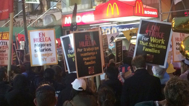 Fast food workers hold a demonstration in New York City on Nov. 10, 2015.