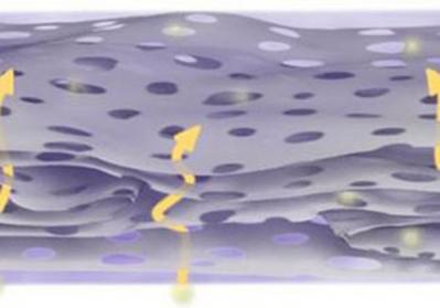 Electricity StorageGraphene has already been used to vastly improve the recharge time ( reportedly 15 minutes) and increased the capacity (by as much as x10) of Lithium batteries, supercapacitors and recently developed supercapacitor-battery hybrids. Testing of holey graphene oxide shows ultra-high capacitances of 283 Farads/gram and 234 Farads/cm3. By combining graphene with Manganese Dioxide (MnO2) capacitance of 1,100 Farads/ cm3 have been achieved. Fig. 2 Holey Graphene is a 3D material that has tiny holes in it. Close-up view of framework film; arrows highlight ion-transport pathway short-cut. Source: NanoWerk and Graphene Info