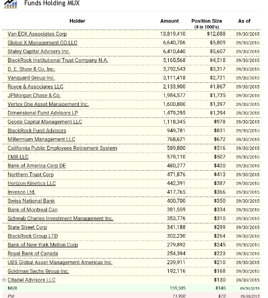 AS THE LONG LIST BELOW SHOWS THERE ARE AT LEAST 80 FUNDS HOLDING MUX.